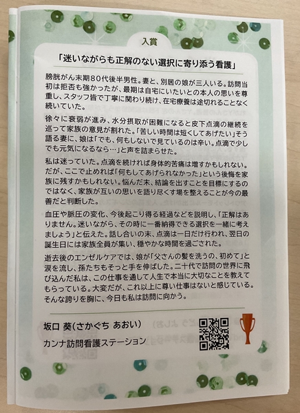 カンナ訪問看護ステーションの坂口看護師のエピソードが入賞しました!