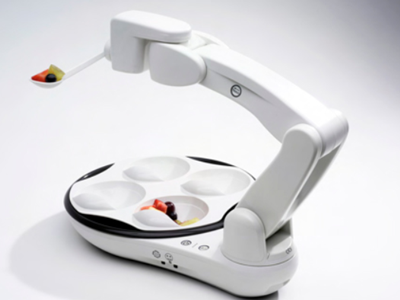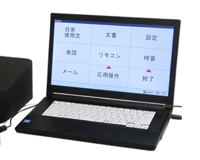 発話や筆談が困難な方を対象にコミュニケーションを支援する重度障害者用意思伝達装置「伝の心」や、食事介助の必要な方がご自身の好きな量や順番、タイミングで食べるための介助をするロボット「Obi」など、実際に商品を見せていただきながら仕様や操作方法等を教えていただきました。