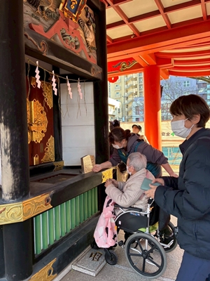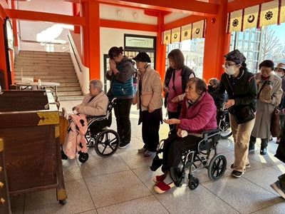 千葉神社で初詣 2026年1月16日 最終更新日時 : 2026年1月27日 カンナ 1月16日、利用者様と千葉神社に初詣に行きました。 雲ひとつないよいお天気で、お出かけ日和でした。みなさん何をお願いされたでしょうか。今年もよい一年になるといいですね。