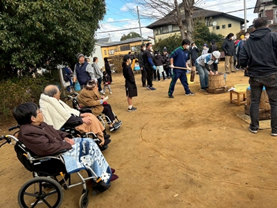餅つき 2025年12月6日 最終更新日時 : 2025年12月15日 カンナ 12月6日(日)に川戸地区の餅つきがありました。 スタッフも餅つき体験!日曜日の利用者さんと一緒に参加しました。 つきたてのお餅は美味しいですね!